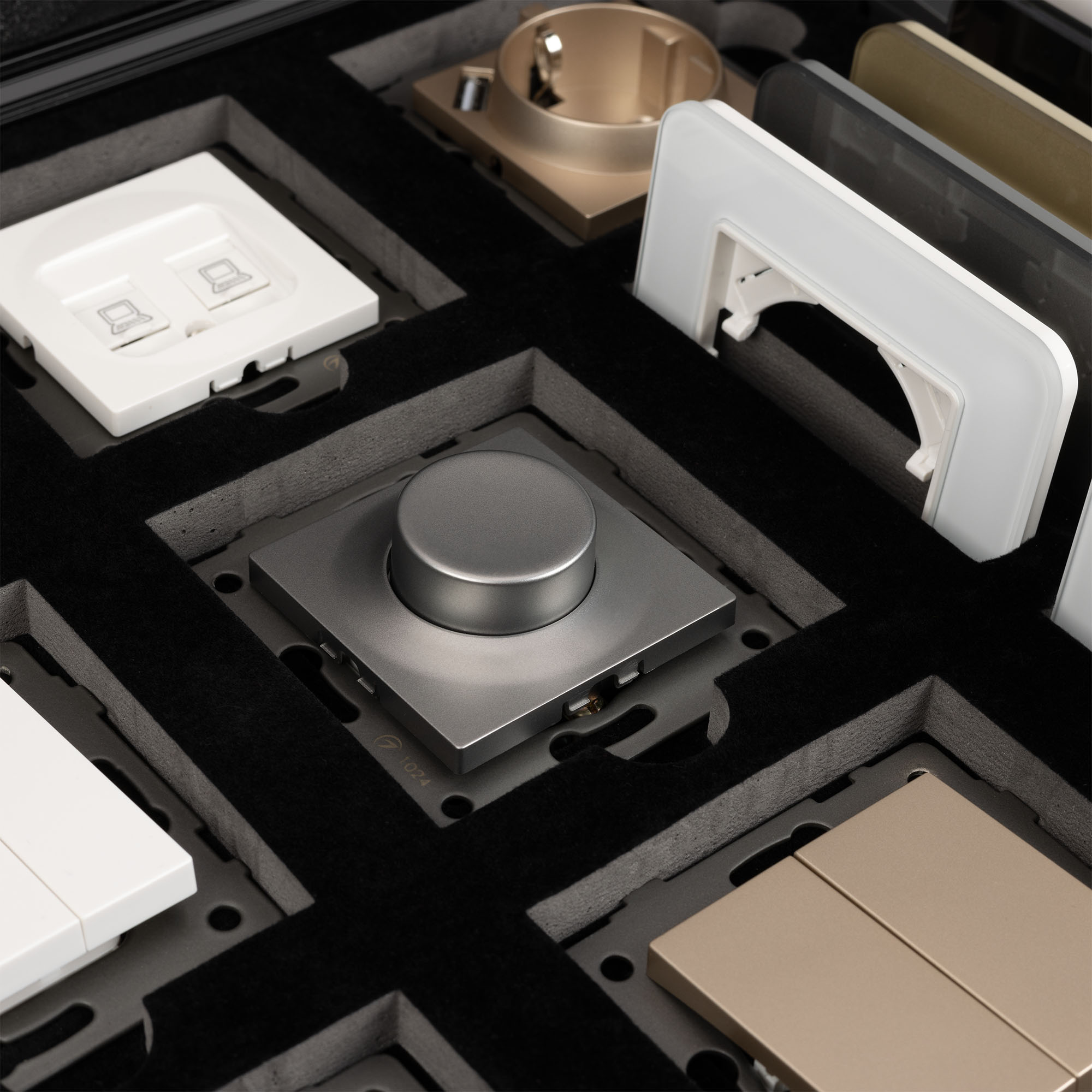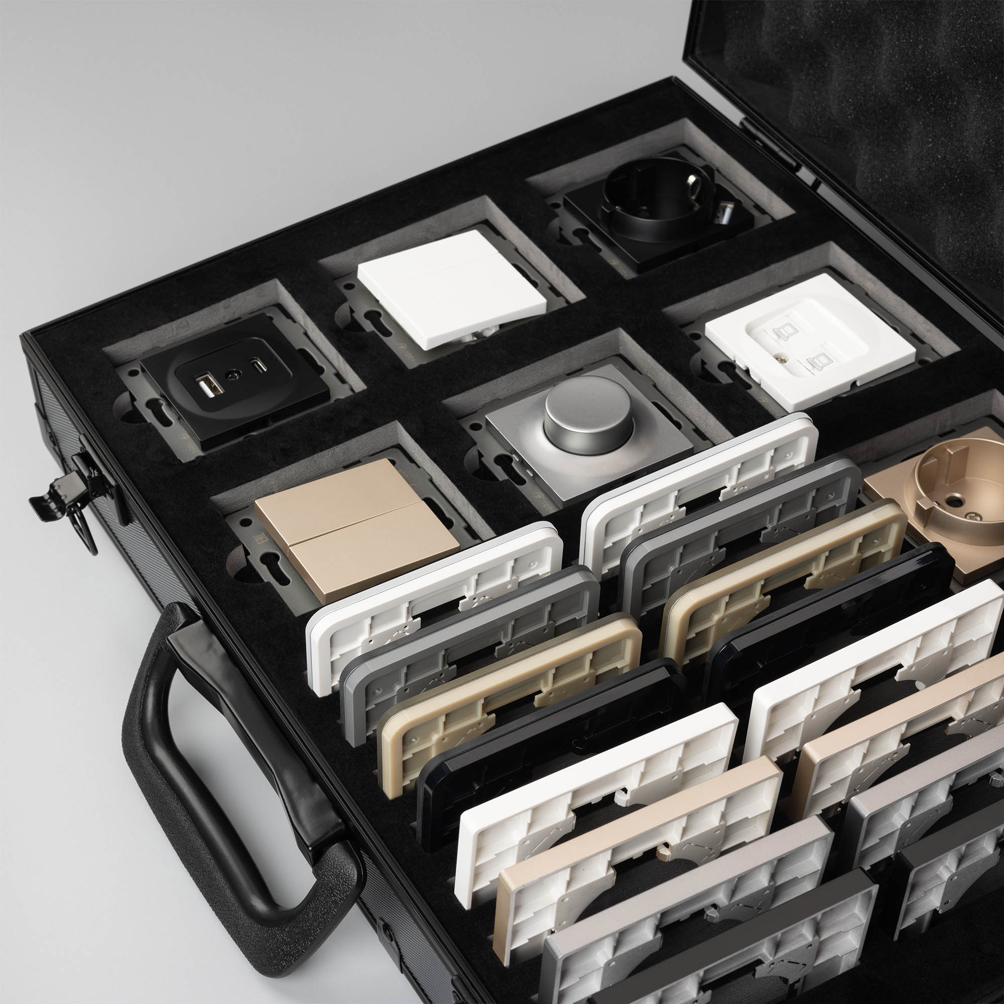 Демо-кейс с наполнением электроустановочных изделий серий AKIRY, PERIO, OMALI, XSILO и сопутствующих механизмов. Демо-кейс содержит: Рамки серии PERIO в цветах белый, черный, золотой и серебристый (серый). Поверхность рамок имеет матовое покрытие; Рамки серии OMALI в цветах белый, черный, золотой и серебристый (серый). Поверхность рамок имеет глянцевое и Soft-Touch покрытие; Механизм USB розетки в черном цвете - арт.049838 Механизм компьютерной розетки (двойной) в белом цвете - арт.049854 Механизм розетки с дополнительными USB Type A + Type C выходами в золотом цвете - арт.049832 Механизм розетки с дополнительными USB Type A + Type A выходами в черном цвете - арт.049819 Механизм выключателя на три клавиши в белом цвете - арт.049896. Механизм выключателя на две самовозвратные клавиши в золотом цвете - арт. 049886 Механизм розетки влагозащищенный в серебристом(сером) цвете - арт. 049836 Механизм светорегулятора в серебристом(сером) цвете - арт. 049865 Рамки представленных серий накладного типа монтажа - не требуют дополнительного оборудования для установки рамки на механизме.