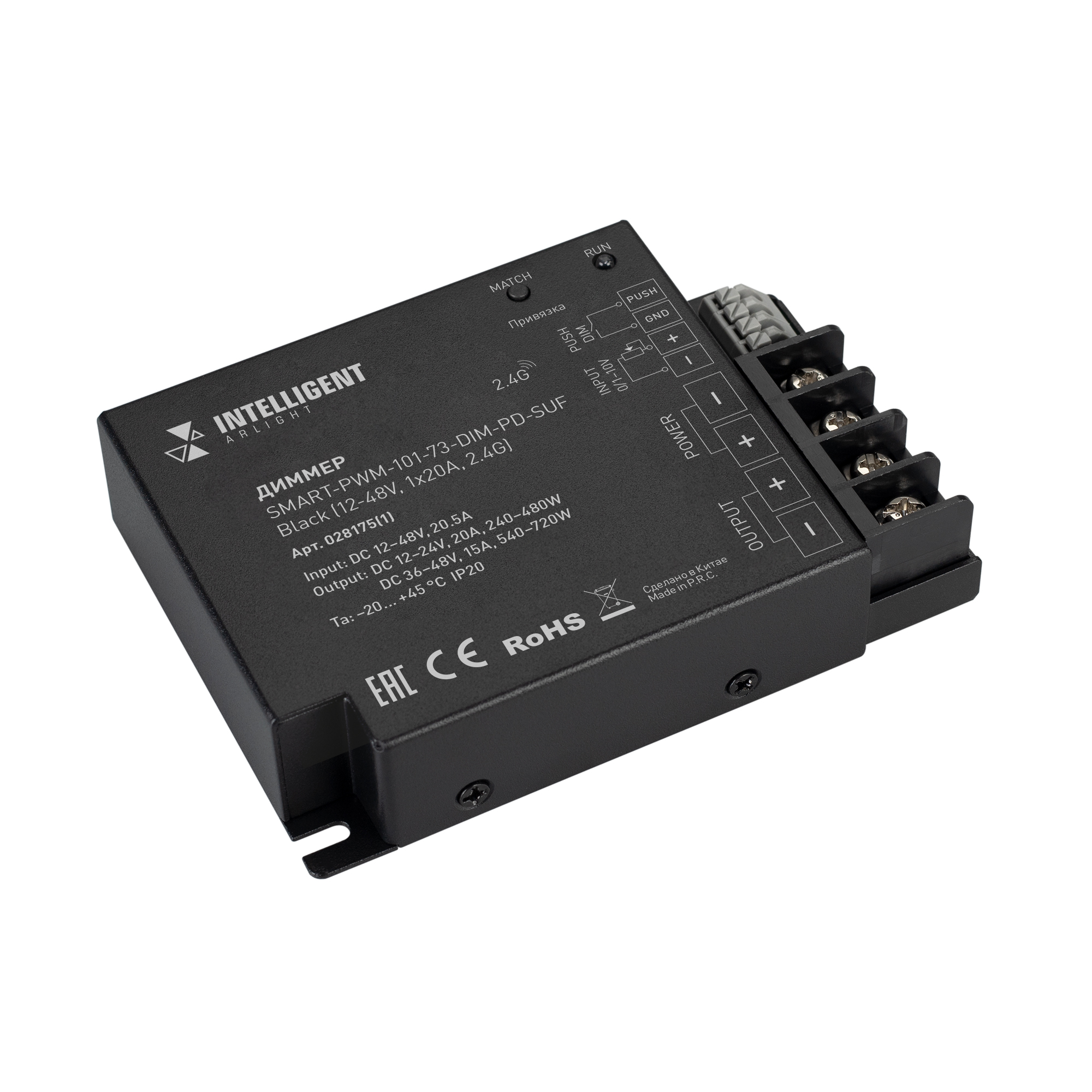 INTELLIGENT ARLIGHT Диммер SMART-PWM-101-73-DIM-PD-SUF Black (12-48V, 1x20A, 2.4G) (IARL, IP20 Металл, 5 лет) 028175(1) в Красноярске