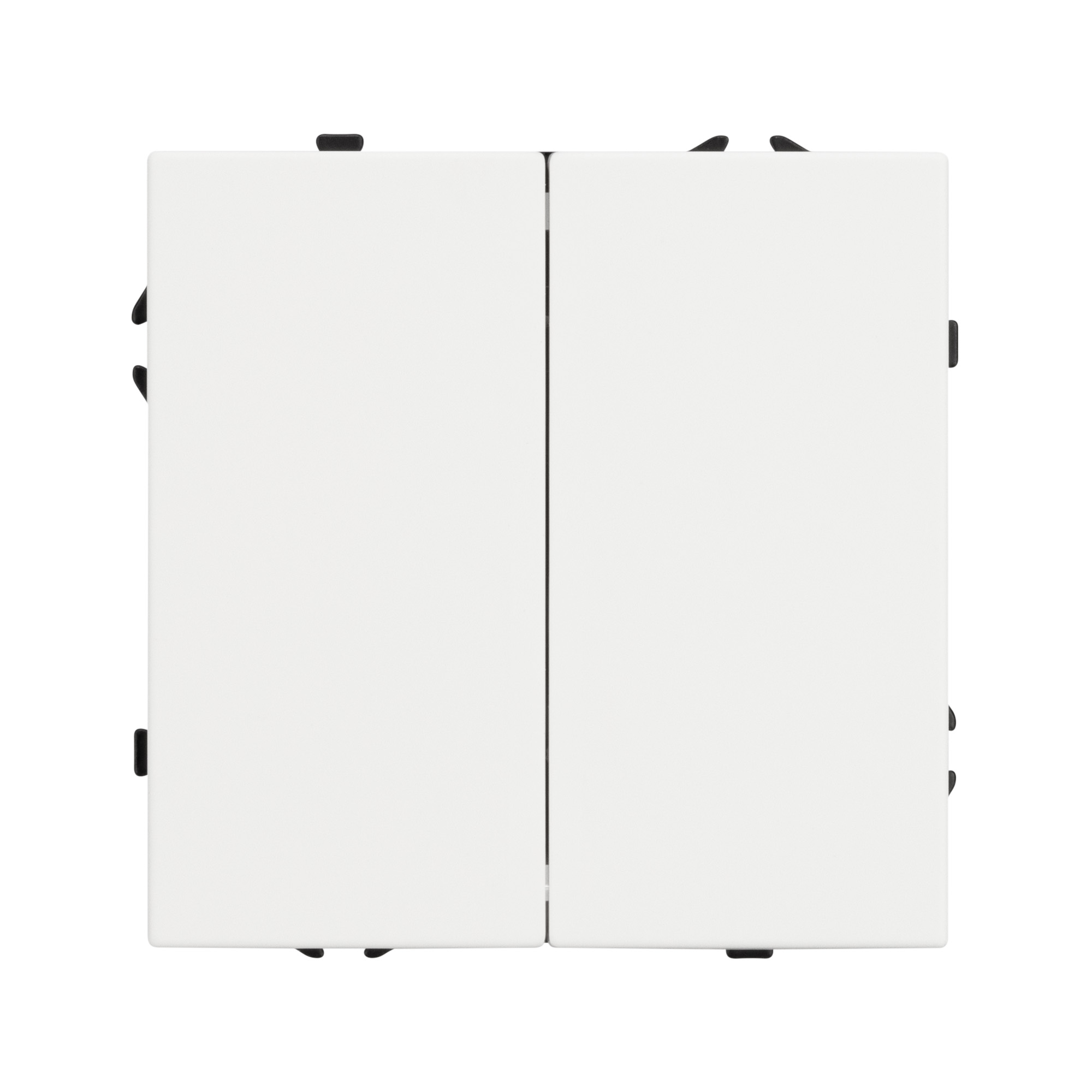 Механизм выключателя света клавишный на 1 пост 2 клавиши (непроходной). Цвет - белый, с Soft-Touch покрытием. Без фронтальной рамки. Уровень пылевлагозащиты IP20. Выключатель устанавливается в стандартный круглый подрозетник круглого сечения диаметром 60мм.