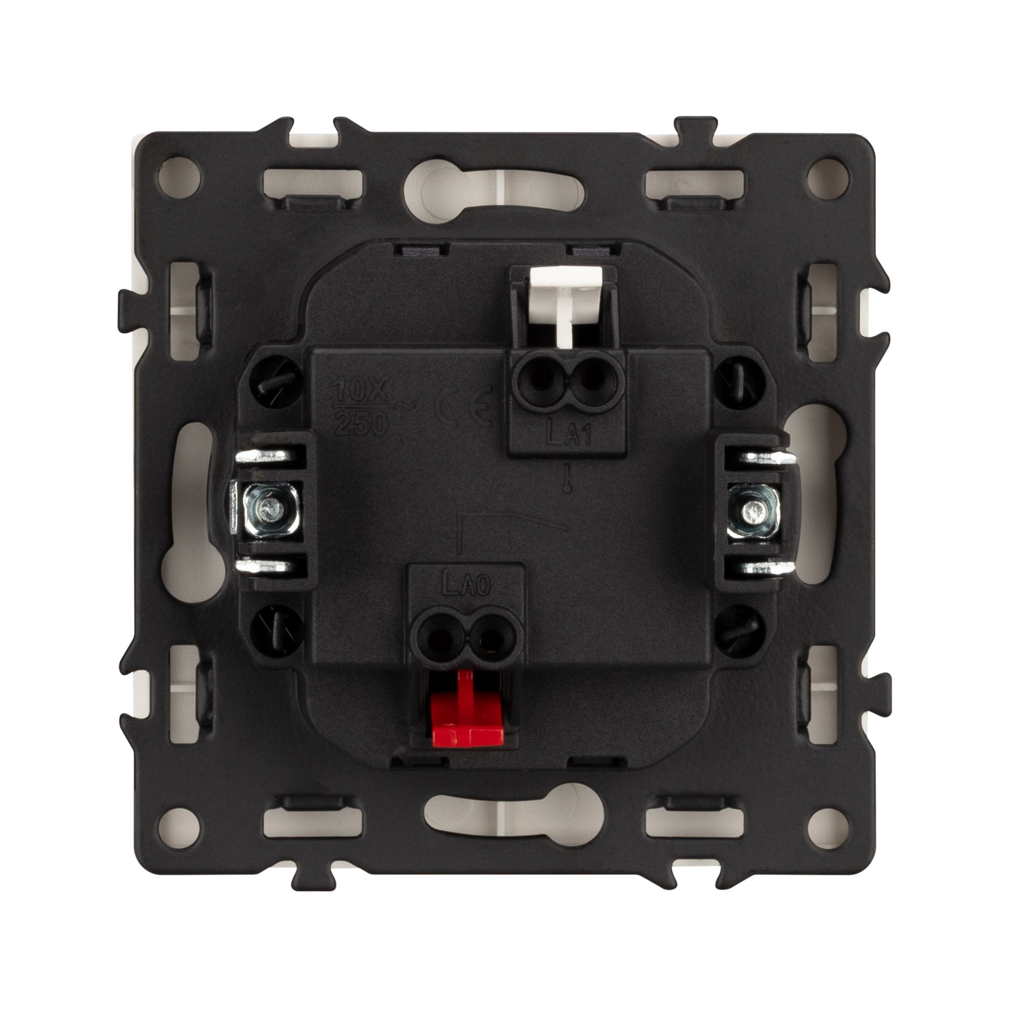 Строгие геометрические линии гармонично сочетаются с функциональностью продуманных механизмов, создавая идеальное решение для дизайн-проектов, где важны как эстетика, так и практичность. Механизм выключателя света совместим с рамками серии NOBE, создает утонченный минималистичный вид. Скрытый тип монтажа позволяет гармонично встроить в интерьер любого современного дизайн-проекта. Видимая часть механизма выполнена из высококачественного пластика золотого цвета и имеет Soft-Touch покрытие, что придает изделию приятные тактильные ощущения и стильный внешний вид. Соединение посредством быстрозажимных контактов, позволяет надежно подсоединить механизм выключателя к питающим элементам, минимизируя затраченное время на монтаж. А усиленные распорные лапки двойного захвата надежно фиксируют механизм в установочном подрозетнике круглого сечения диаметром 60мм. Суппорт окрашен в черный матовый цвет под основу механизма и выполнен из металла толщиной 1,5мм, что обеспечивает безопасность и уверенность в установке. На каждой стороне суппорта размещены фиксирующие элементы, позволяющие комбинировать механизмы в системы до 5 шт как горизонтально, так и вертикально. Выключатель оснащен клавишами с активной подсветкой, синего цвета свечения.