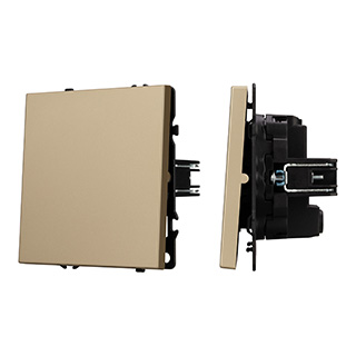 Строгие геометрические линии гармонично сочетаются с функциональностью продуманных механизмов, создавая идеальное решение для дизайн-проектов, где важны как эстетика, так и практичность. Механизм выключателя света совместим с рамками серии NOBE, создает утонченный минималистичный вид. Скрытый тип монтажа позволяет гармонично встроить в интерьер любого современного дизайн-проекта. Видимая часть механизма выполнена из высококачественного пластика золотого цвета и имеет Soft-Touch покрытие, что придает изделию приятные тактильные ощущения и стильный внешний вид. Контактная часть присоединяется при помощи винтовых зажимов, позволяя быстро и легко подсоединить механизм выключателя к питающим элементам. А усиленные распорные лапки двойного захвата надежно фиксируют механизм в установочном подрозетнике круглого сечения диаметром 60мм. Суппорт окрашен в черный матовый цвет под основу механизма и выполнен из металла толщиной 1,5мм, что обеспечивает безопасность и уверенность в установке. На каждой стороне суппорта размещены фиксирующие элементы, позволяющие комбинировать механизмы в системы до 5 шт как горизонтально, так и вертикально.