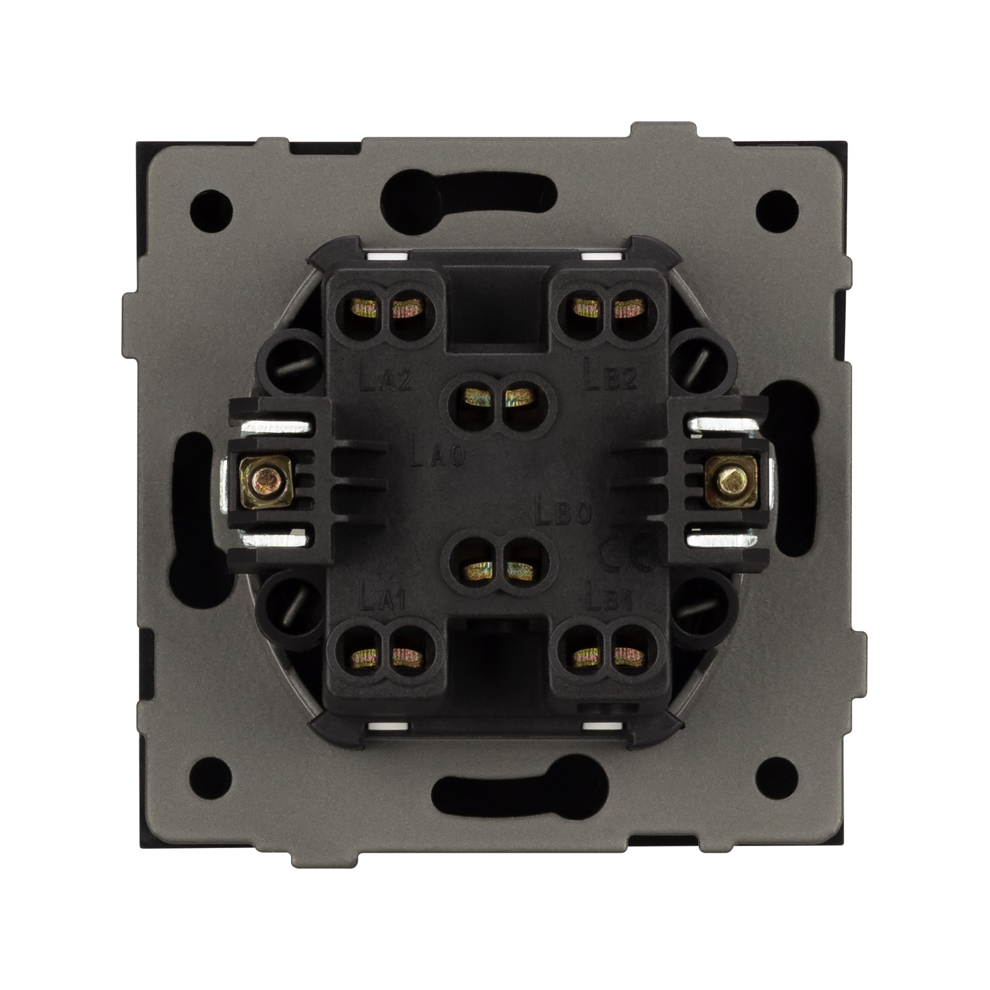 Механизм выключателя света совместим с рамками серии TENDO, создает утонченный минималистичный вид. Скрытый тип монтажа позволяет гармонично встроить в интерьер любого современного дизайн-проекта. Видимая часть механизма выполнена из высококачественного пластика серого цвета и имеет матовое покрытие. Контактная часть присоединяется при помощи винтовых зажимов, позволяя надежно подсоединить механизм выключателя к питающим элементам. А усиленные распорные лапки двойного захвата надежно фиксируют механизм в установочном подрозетнике круглого сечения диаметром 60мм. Суппорт окрашен порошковой краской и выполнен из металла толщиной 1,5мм, что обеспечивает безопасность и уверенность в установке. На каждой стороне суппорта размещены фиксирующие элементы, позволяющие комбинировать механизмы в системы до 5 шт как горизонтально, так и вертикально.