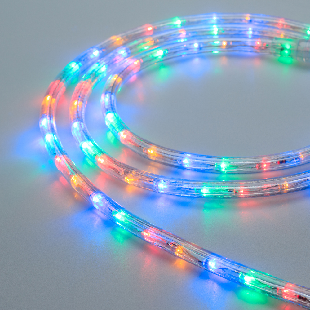 Образец светодиодного дюралайта с эффектом динамики. Длина отрезка 4 метра. Цвет светодиодов RGBY. Количество светодиодов 36 шт/метр, диаметр 13 мм. Шаг резки 4 метра. Напряжение питания AC 230V, потребляемая мощность 1.8W/метр. Степень влагозащиты IP54. Аксессуар для подключения AC 230V в комплекте. Для достижения динамических эффектов необходимо использовать контроллер (см. сопутствующие товары).