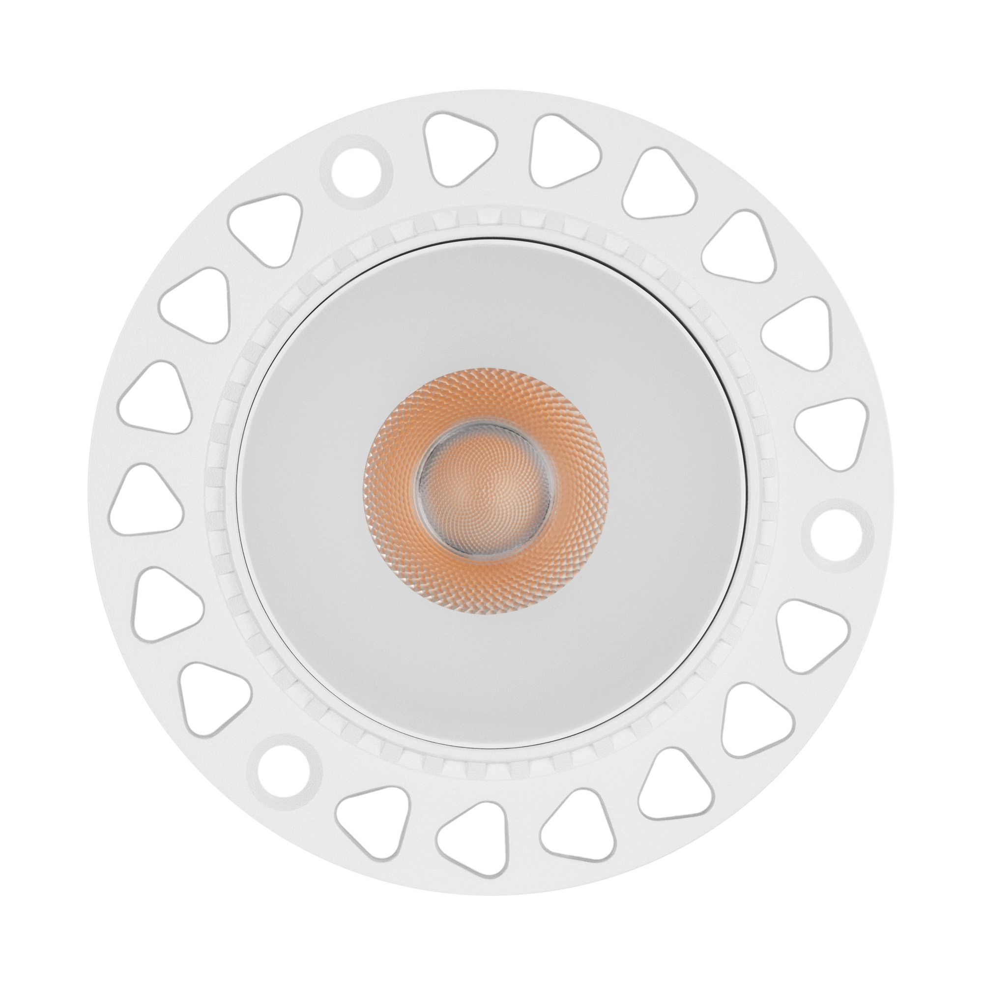 Встраиваемый светильник даунлайт. Мощность 9 Вт, св. поток 710 лм, 78 лм/Вт, теплый 3000 K, CRI>92, угол 24°, напряжение питания 230 В. Белый круглый корпус из алюминия, белый матовый отражатель, степень защиты IP20 . Размер: диаметр 95 мм, высота 76 мм. Монтаж встраиваемый, установочное отверстие: диаметр 65 мм. Драйвер 27-40 В, 200 мА, пульсация <0,5%.