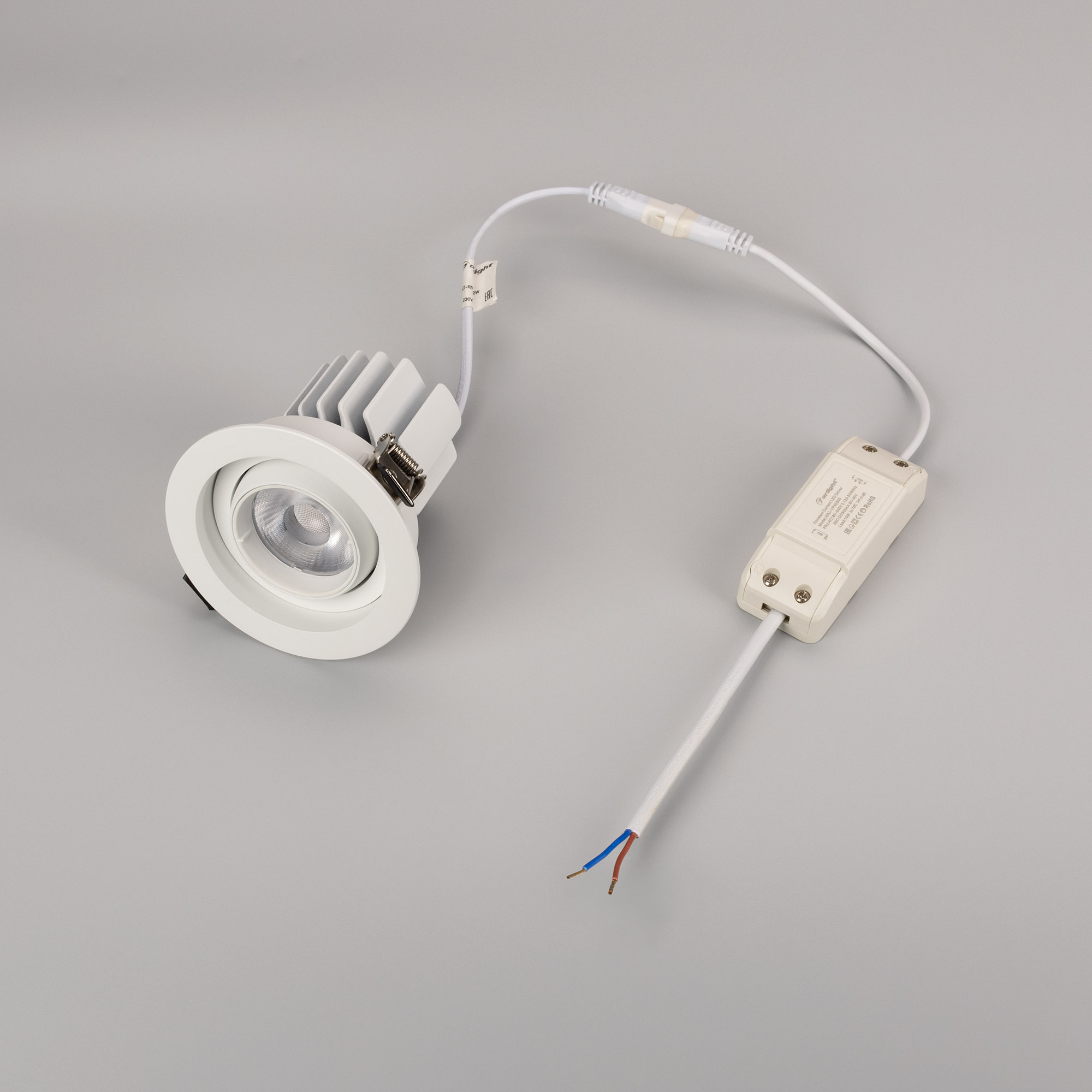 Встраиваемый карданный поворотный светильник с высоким индексом цветопередачи CRI>92 предназначен для создания качественного освещения. За основу поворотного механизма светильника взят принцип кардана – подвижное соединение двух колец, вложенных одно в другое. Световой модуль вращается вокруг своей оси на 360 градусов и отклоняется от горизонта на 30 градусов, что позволяет с лёгкостью регулировать направление пучка света и его концентрацию на определенной зоне. Особая конфигурация корпуса из алюминия оригинально смотрится в интерьере и позволяет эффективно отводить тепло. Светильник с углом рассеивания 40 градусов отлично подходит как для локальной акцентной подсветки витрин, прилавков магазинов, бутиков и стендов выставочных залов, так и для общего освещения. Легко устанавливается с помощью пружин в монтажное отверстие потолка. В комплекте поставляется драйвер, что позволяет безопасно и быстро подключать светильник напрямую к сети переменного тока 230 В.
