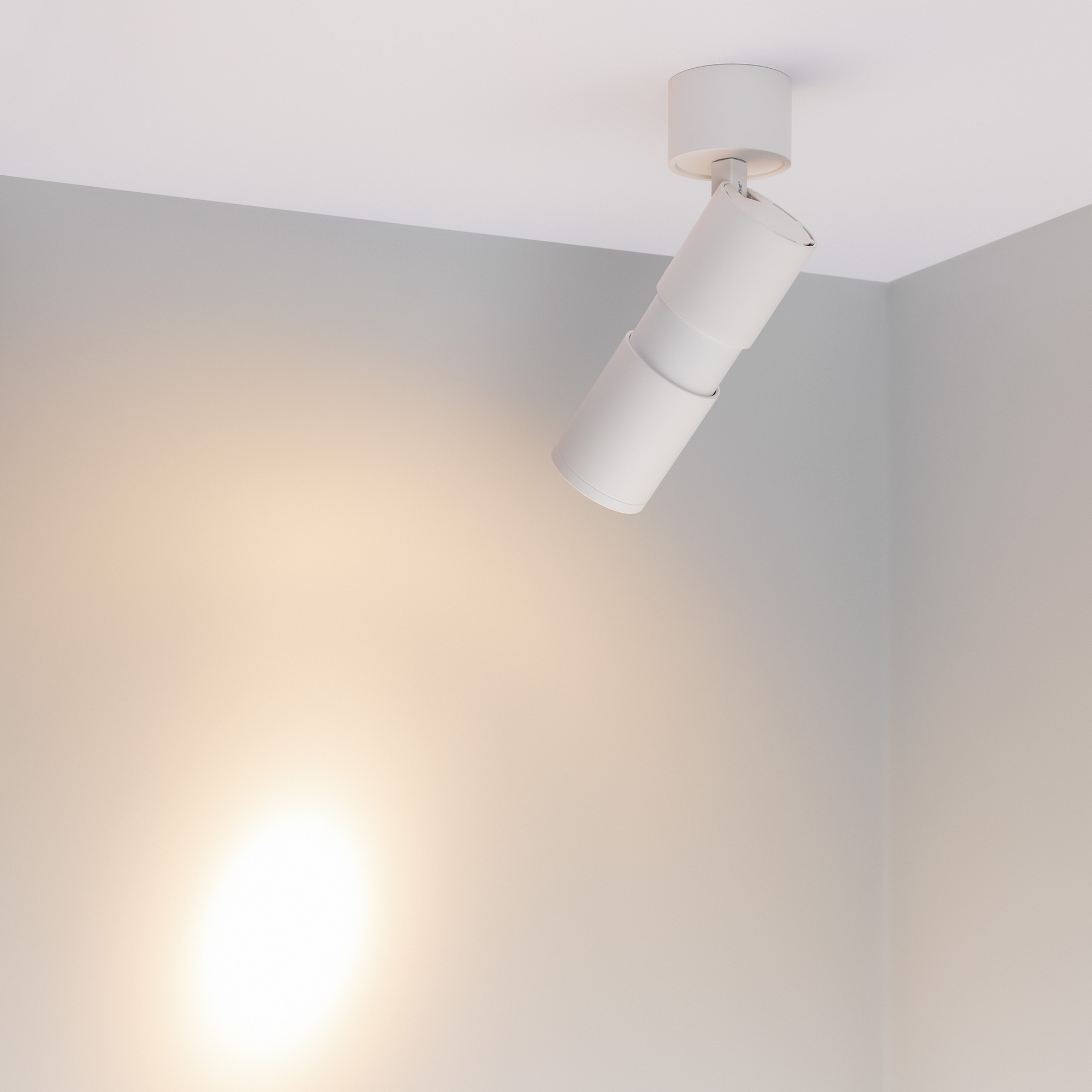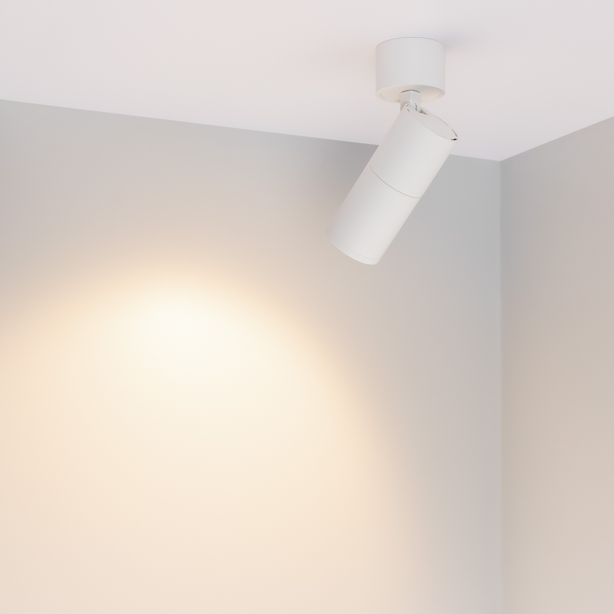 Накладной откидной поворотный светильник, 12Вт. Цвет свечения ТЕПЛЫЙ 3000K, световой поток 720 лм, 60 лм/Вт, регулируемый угол 8-80°, CRI>90. Корпус круглый, металл, цвет белый, IP20. Размеры DxHxL Ø55x132~163,5 мм. Размер чаши Ø60,7x33,5 мм. Входное напряжение AC220-240V, мощность 12Вт. Драйвер встроенный (24-40V, 300 мА). Пульсация <1%.