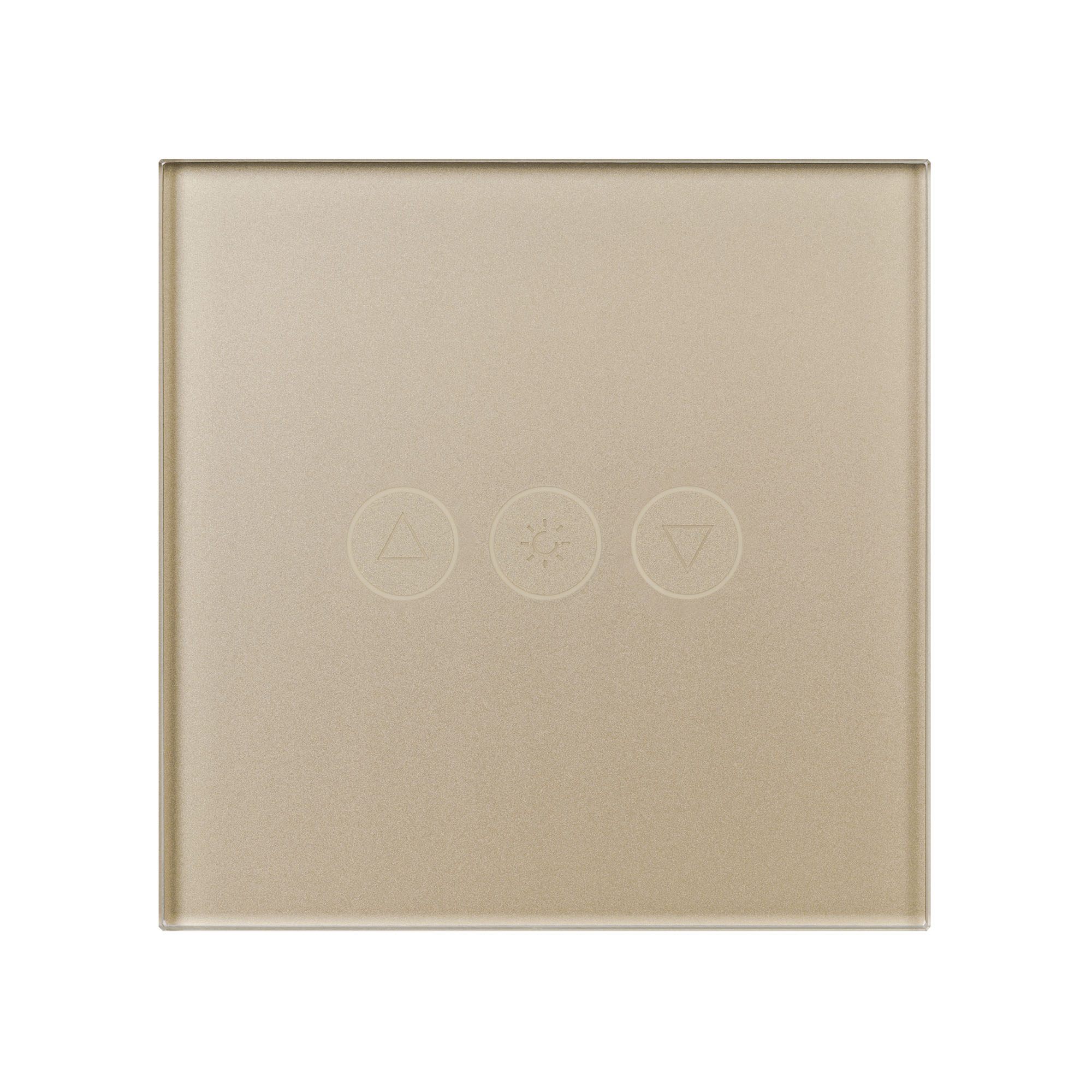 Сенсорный светорегулятор на 1 пост 3 клавиши (с функцией диммирования). Цвет - золотой. Клавиши имеют статичную LED подсветку - синего свечения. Уровень пылевлагозащиты IP20. Выключатель устанавливается в стандартный круглый подрозетник круглого сечения диаметром 60мм. Максимальная нагрузка 3-500 Вт только для ламп накаливания и галогенных, 5-150 Вт только для энергосберегающих и светодиодных ламп.